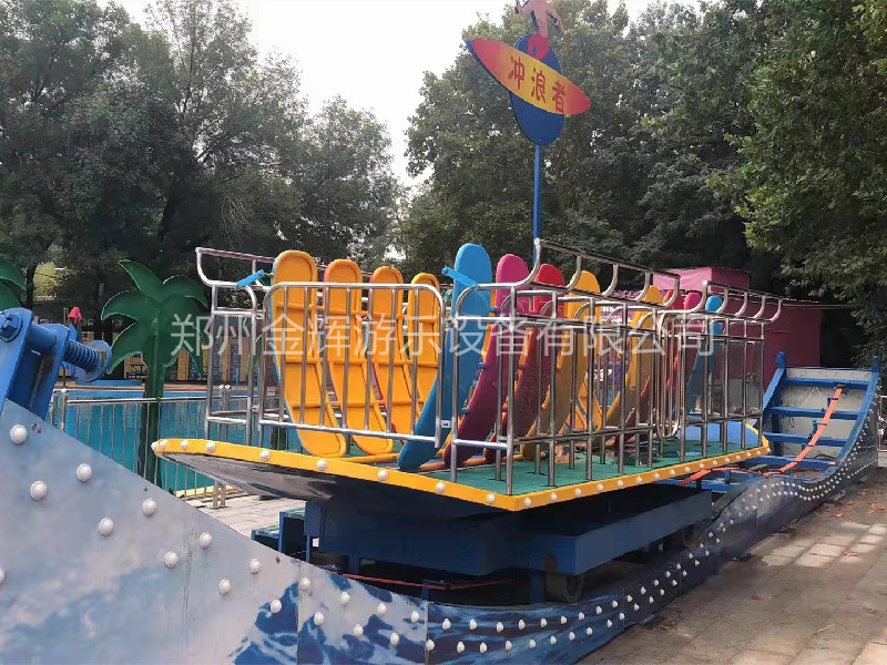 “沖浪者”又叫沖浪滑板,是款占地面積較大的新型軌道類游樂(lè)設(shè)備,它的亮點(diǎn)就是乘客都是站著乘坐的,前面有欄桿,后面有靠背,時(shí)可以扣緊帶,是非常好玩的游樂(lè)設(shè)備。它運(yùn)行起來(lái)除了順著軌道來(lái)回滑行,座艙也會(huì)進(jìn)行360度旋轉(zhuǎn),由于它的座艙是滑板樣式的,因此它的兩端非常刺激,就像是在沖浪樣涼爽。