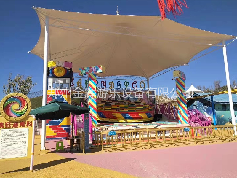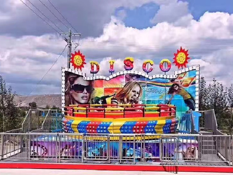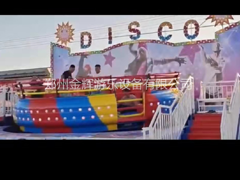 迪斯科轉(zhuǎn)盤是陀螺類回轉(zhuǎn)大型游樂設(shè)備。游客乘坐的吊箱在強(qiáng)離心力作用下,旋轉(zhuǎn)翻飛,仿佛被推入越時(shí)空的天體,翻江倒海,天旋地轉(zhuǎn),驚心動(dòng)魄的刺激,風(fēng)馳快感,令人回味無窮。