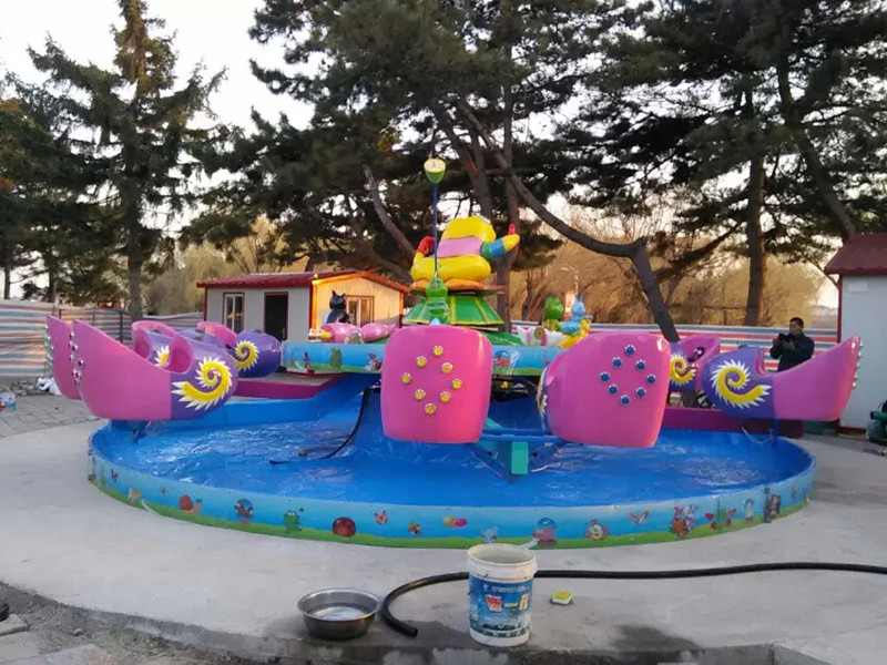 本設(shè)備為無基礎(chǔ)可移動(dòng)的兒童游樂設(shè)備,適合商場(chǎng)、場(chǎng)和公園使用,因?yàn)槲伵L毓り?duì)的占地面積不大,而且在6個(gè)大臂上有著12個(gè)座艙,可以容納12個(gè)成年人同時(shí)游玩,而且在同時(shí),每個(gè)蝸牛殼座艙上面都有著個(gè)可以打水的蝸牛噴水槍